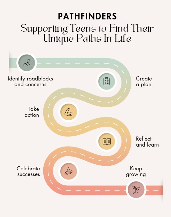 The Pathfinders Program with Coach Erica is designed to help teens navigate life’s challenges, discover their strengths, and grow with confidence.